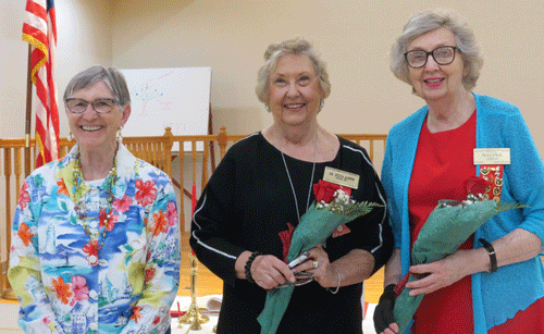 May 16, 2024 - from left, Installation Officer Elaine Coleman and retiring officers: President Dr. Sylvia Alston and Recording Secretary Betsy Clark |