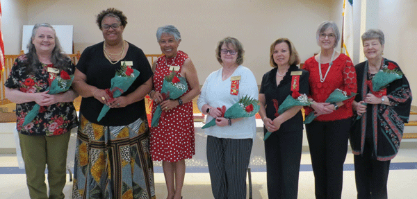 May 16, 2024 - 2024-2026 Gamma Chi Officers: from left, President Sheila Robertson, First Vice President Aimee Cooper, Second Vice President Norma Retzlaff, Recording Secretary Evelyn Hall, Corresponding Secretary Gail Coleman, Treasurer Debra Clayton and Parliamentarian Nancy Tunstall |