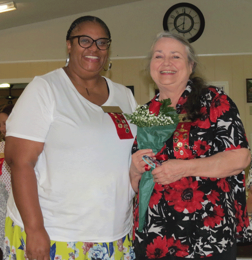 September 5, 2024 - First Vice President Aimee Cooper, left, presented President Sheila Robertson with a rose in appreciation for presenting the card making program. |