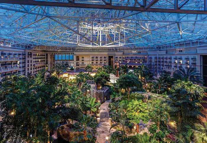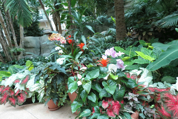 Beautiful foliage along the walkways of the atrium |