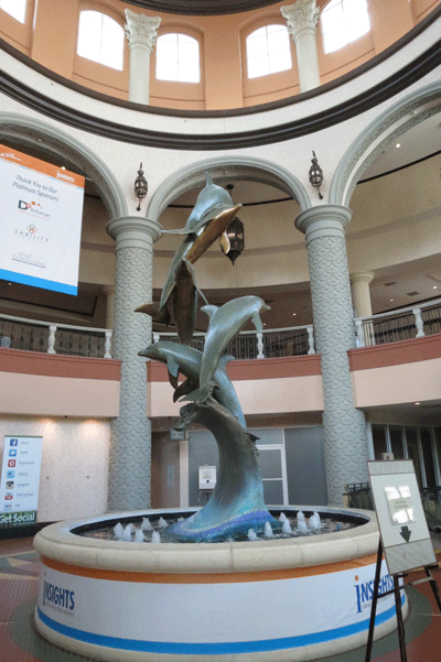 Dolphin statue at the entrance of the Convention Center |