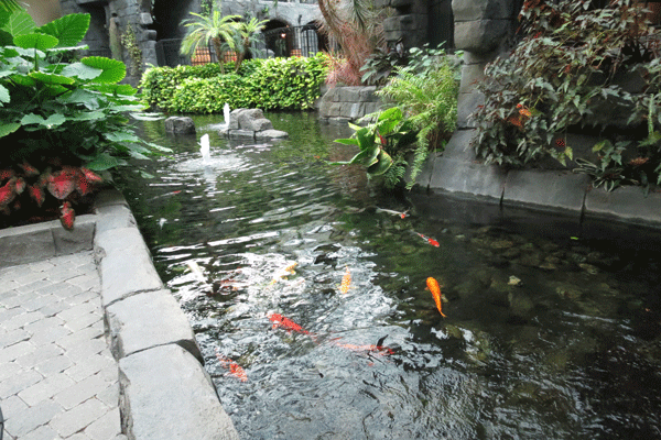 Lovely koi swimming in a stream in the atrium |