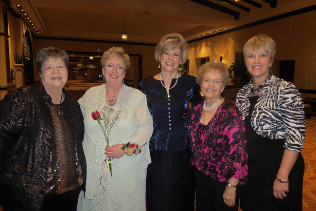 July 13, 2013 (left to right) Gamma Chi Chapter President Nancy Tunstall, Eta State President Pat Taylor, DKG International President Dr. Beverly Helms, Gamma Chi Treasurer Shirley White and Gamma Chi member Debra Clayton (after the Presidents Banquet) |