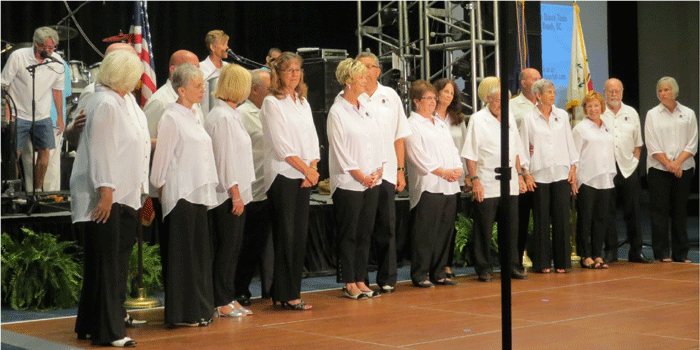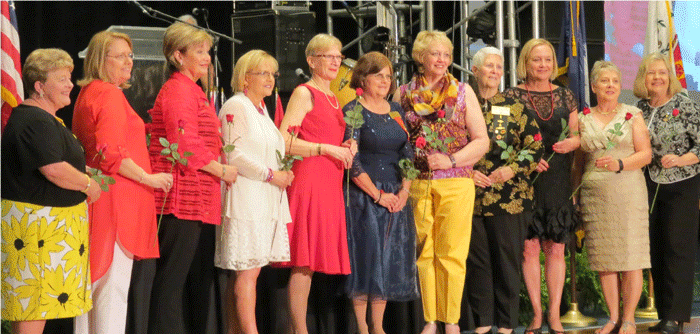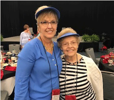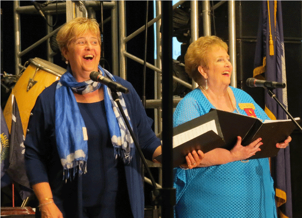 Our Past Eta State NC President Pat Taylor (right) and Nancy Davis of Tennessee sing "Under One Sky" at the opening session |