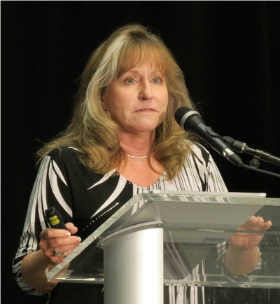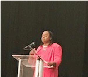 Nita Scott, Membership Services Administrator for DKG Society International, gives the opening session speech entitled "On the Wings of a Butterfly" |