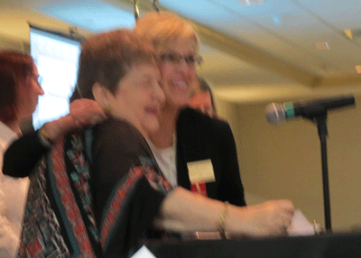 April 30, 2017 - Dr. Janis Meek, left, is congratulated by Shirley White |