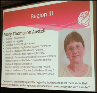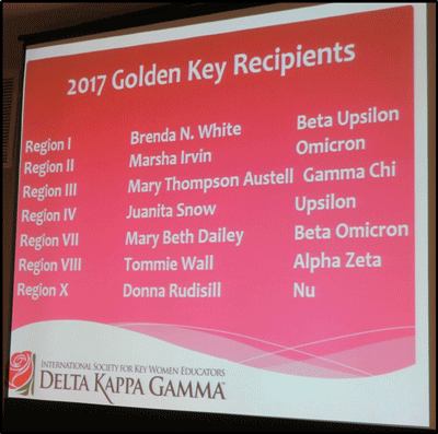 April 28, 2017 - The slide show presentation showed Mary Austell as the Golden Key recipient for Region III |