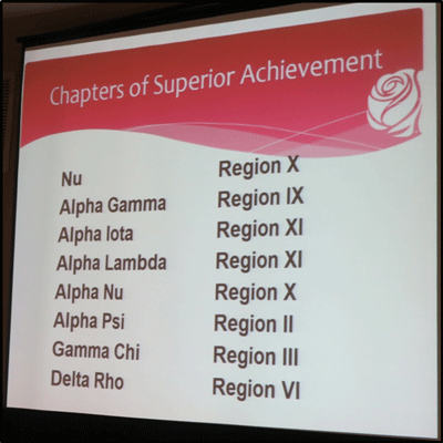 April 28, 2017 - Slide showing that Gamma Chi was one of the eight chapters to qualify for the Superior Chapter Achievement Awards |