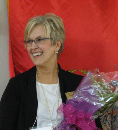 April 28, 2017 - President Debra Clayton holding the crystal vase |