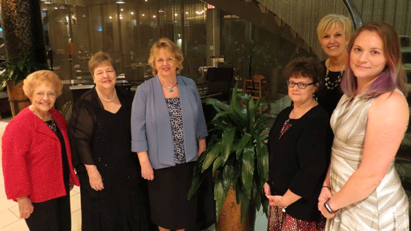 April 29, 2017 - Gamma Chi attendees after the Presidents Banquet; from left to right: Shirley White,Nancy Tunstall, Dr. Janis Meek, Evelyn Hall, Debra Clayton and Ashley Barnette |