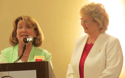 April 30, 2017 - Eta State NC President Sheila Groves, left, prepares to pass the gavel to the new Eta State NC President Connie Savell |
