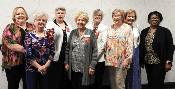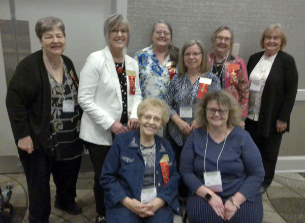 April 28, 2023 - Eight Gamma Chi members attended the convention in Greenville, NC. Seated from left to right: Shirley White and Evelyn Hall; standing from left to right: Nancy Tunstall, Debra Clayton, Sheila Robertson, Gail Coleman, Dr. Sylvia Alston and Sallye Duncan. |