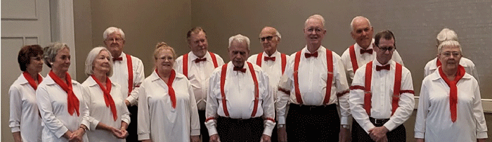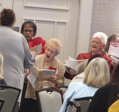 April 30, 2023 - The Convention Chorus sang a final time at the Sunday Birthday Brunch held after the Memorial Service. Shirley is in the center wearing a white jacket. Everyone thoroughly enjoyed their music. |