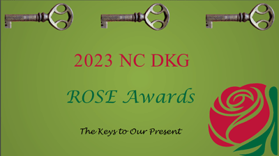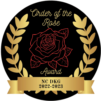 April 28, 2023 - New chapter achievement awards call the ROSE Awards were presented this year. The ROSE Award (Recognition of Society Excellence) has two levels—the Rose Bud Award, symbolic of a young rose with petals not fully opened, and the Order of the Rose Award for chapters more actively involved in DKG work. |