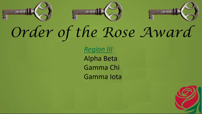 April 28, 2023 - Gamma Chi was one of three chapter in Region III to achieve the Order of the Rose Award. |