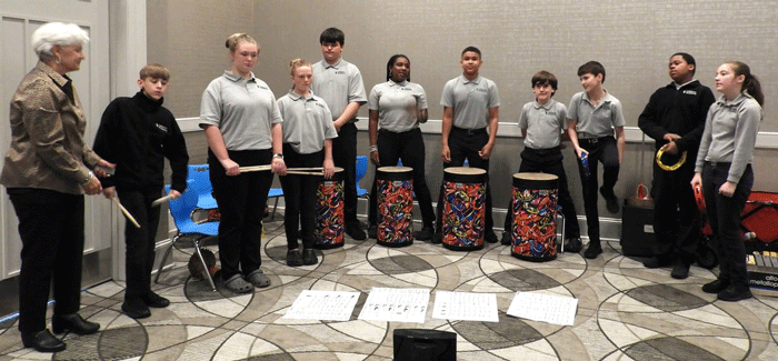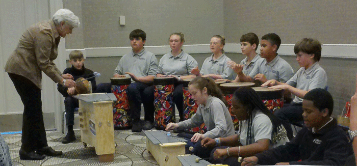 May 29, 2023 - The Saturday morning meeting ended with a treat provided by our member Diane Colin and her students from Littleton Academy. The Drum Circle performed using tall tubano drums, which were purchased using a NC DKG Educational Foundation grant. |