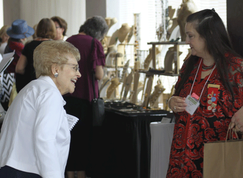 April 29, 2023 - Along with workshops, vendors were offering many items for purchase. Shirley White, left, is looking over the various items. |