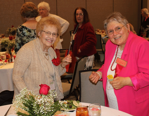 April 30, 2023 - One of the best parts of attending a state convention is reconnecting with old friends. Here we see our President Dr. Sylvia Alston (left) visiting with a friend from her former chapter Gamma Mu in Wilson County. |
