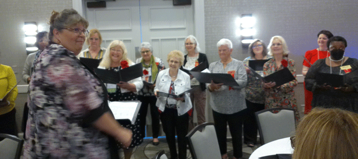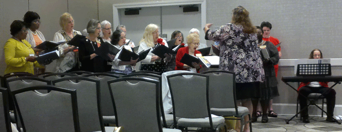 April 29, 2023 - Member Shirley White (center) sang in the Convention Chorus at the Presidents Banquet. |