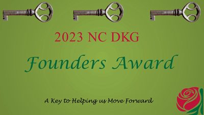 April 30, 2023 - Attendees were thrilled at the announcement of Sheila Groves as the recipient of the Founders Award given in odd years. Sheila was the 2015-2017 past NC DKG president and has served on many state and international committees. This award is given to a woman who has made an outstanding contribution to the improvement of the quality of human life through education, research, publications, or service. |