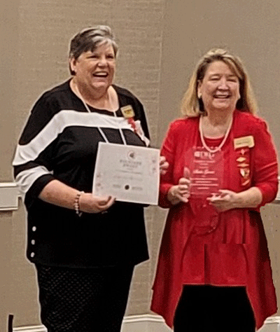 April 30, 2023 - NC DKG President Beth Winstead (left) presents the Founders Award to Sheila Groves. |