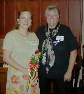 Beta Chapter president Lucretia Page (right) welcomes three new